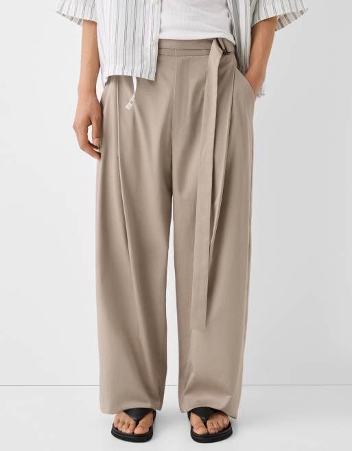 Bershka Collection baggy leg tailored pants in brown