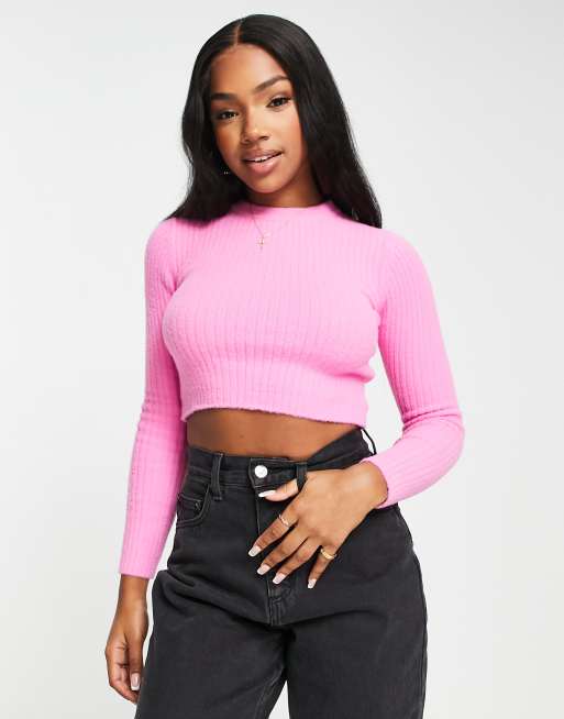 Bershka fluffy yarn sweater in pink