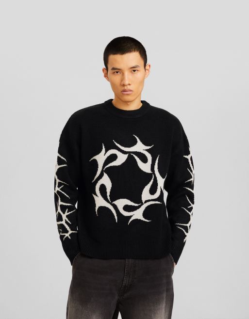 Bershka graphic knitted sweater in black