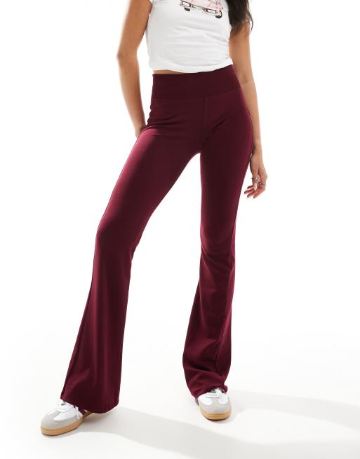 Bershka high waisted sculpting jersey flared pants in burgundy