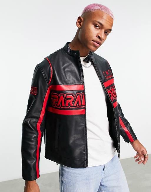 Bershka motocross faux leather jacket in black