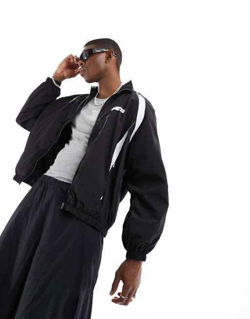 Bershka nylon reflective panel windbreaker in black