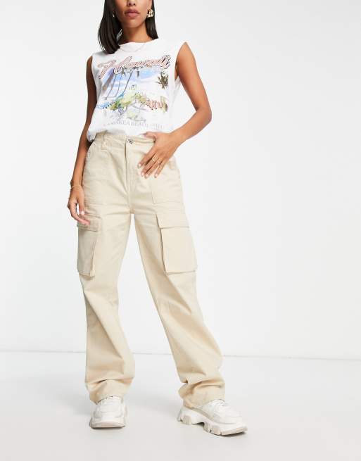 Bershka straight leg cargo pants in beige