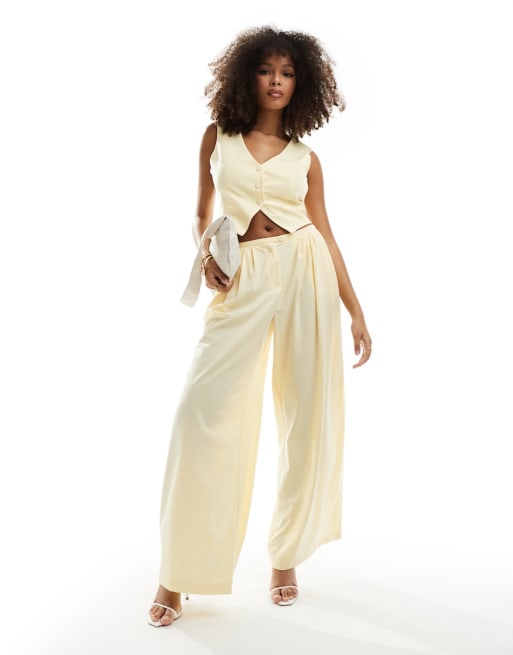 Bershka tailored suit vest and pants set in butter