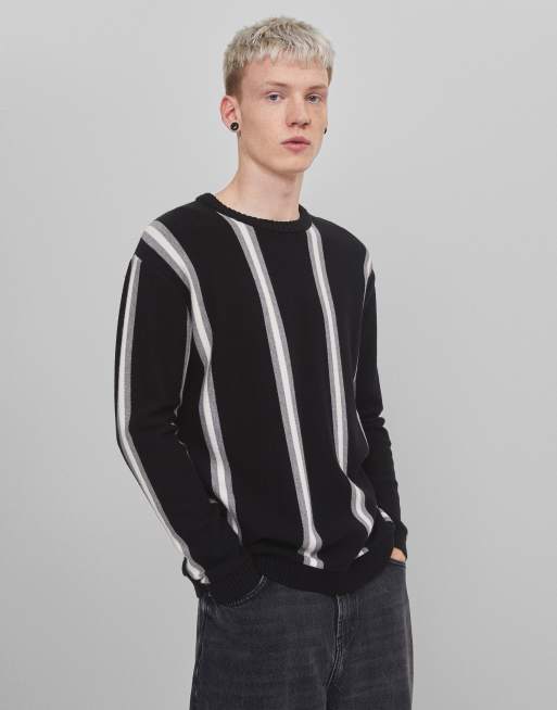 Bershka vertical stripe sweater in black