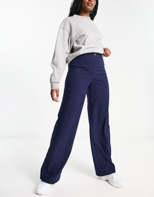 Bershka wide leg slouchy dad tailored pants in navy