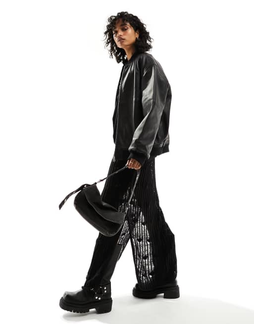 Bolongaro Trevor oversized leather bomber jacket in black