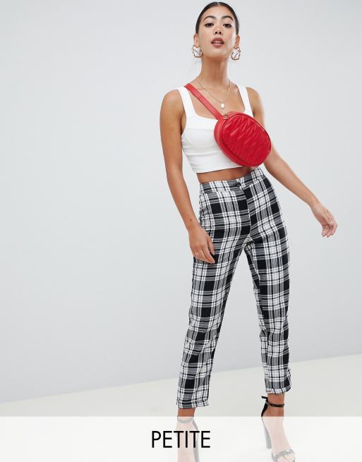 Boohoo Petite high waist trouser in check