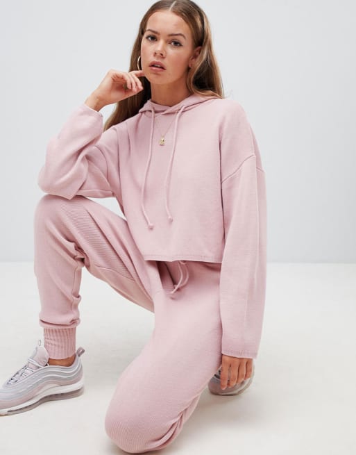 Boohoo crop hoodie & sweatpants two-piece in pink