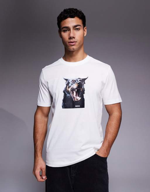 BOSS Orange graphic doberman print t-shirt in white
