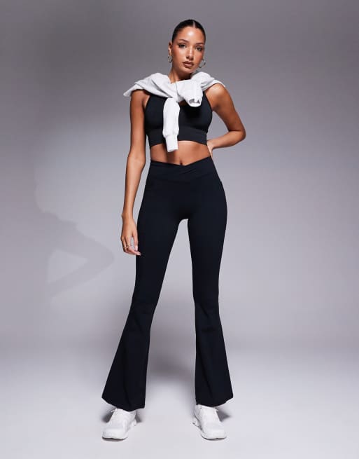 Bo+Tee cross waistband flare leggings in black