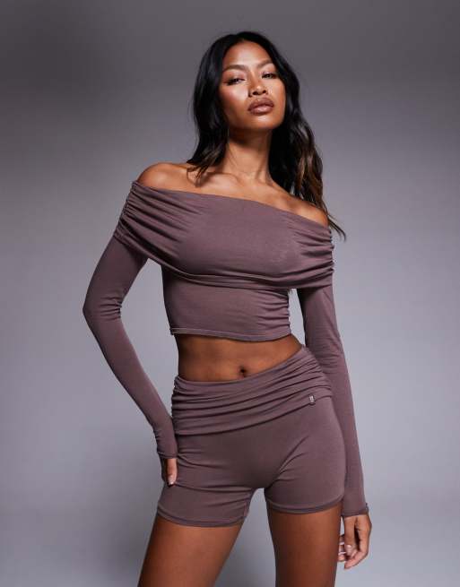 Bo+Tee fold-over mini shorts in taupe - part of a set