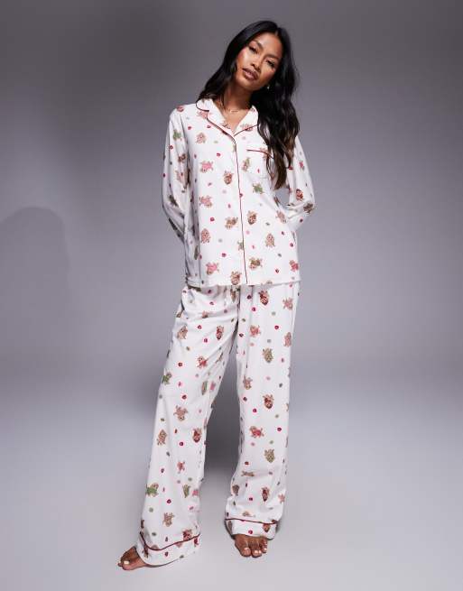 Boux Avenue fleece long sleeve top & pants PJ set in puppy christmas print