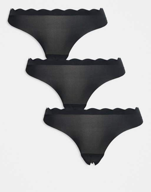Brave Soul 3 pack microfiber thongs with scalloped edges in black