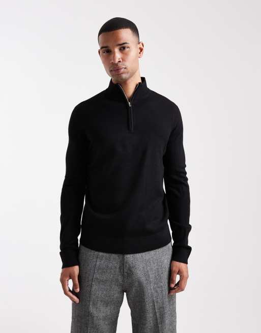 Brave Soul fine knit quarter zip sweater in black