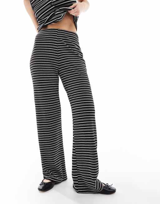 Brave Soul jersey pants set in black and white stripe