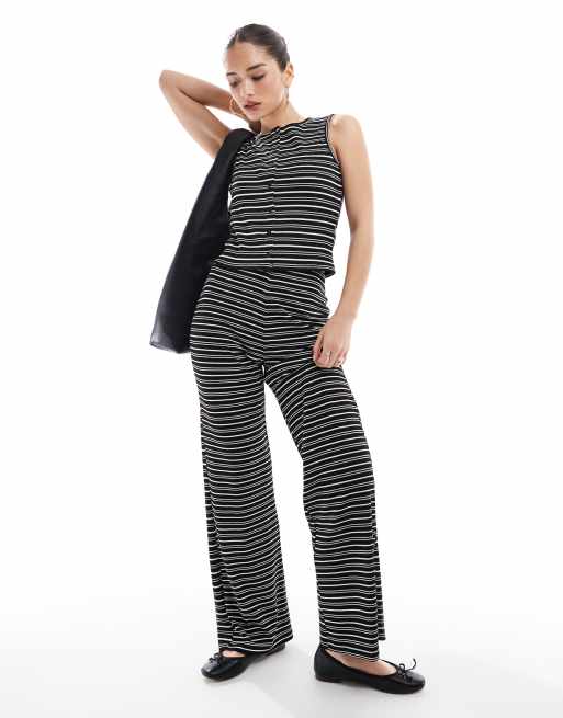 Brave Soul jersey wide leg pants in black and white stripe - part of a set
