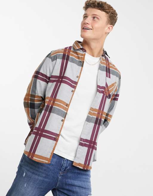 Brave Soul large check flannel shirt in gray