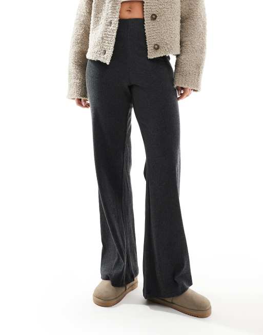 Brave Soul ribbed wide leg pants in charcoal