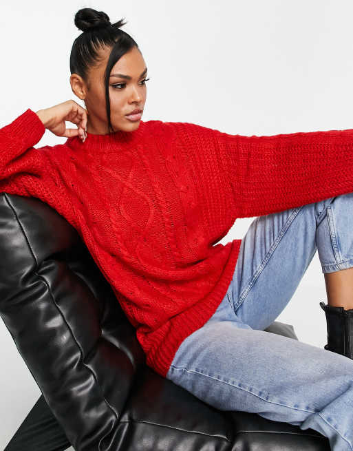 Brave Soul tokyo oversized cable knit sweater in red