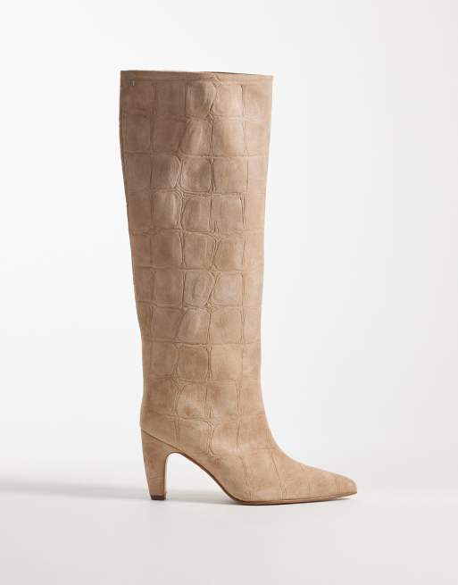 Bronx Low-Jadey kitten heel knee boots in croc suede
