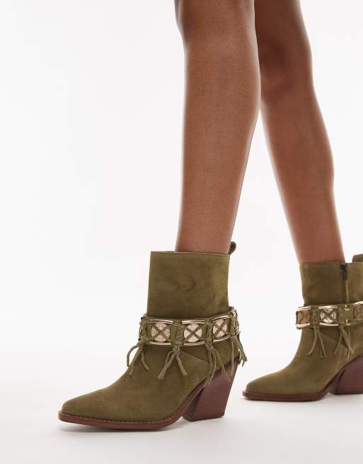 Bronx New-kole fringe western ankle boots in khaki green suede
