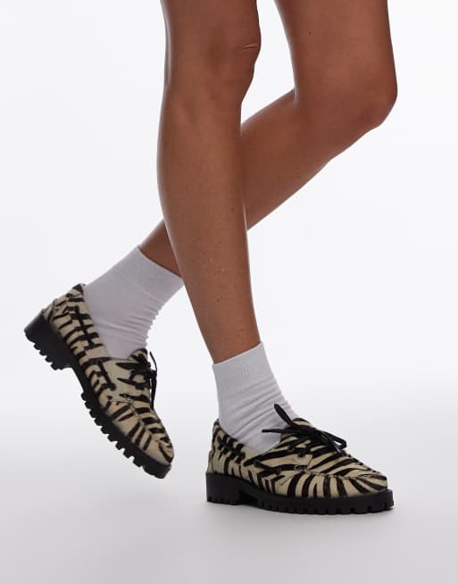 Bronx Sie-nna boat shoes in zebra print hairy leather