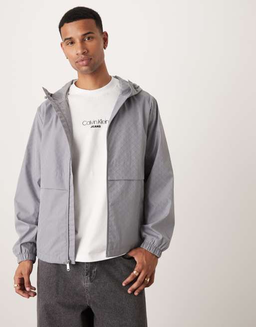 Calvin Klein Jeans all over print nylon windbreaker jacket in gray