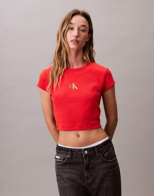 Calvin Klein Jeans monogram baby tee in red