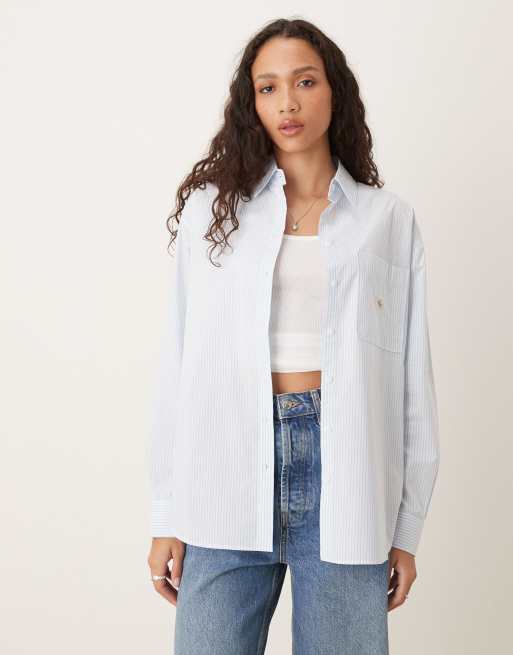 Calvin Klein Jeans woven label relaxed shirt in white and blue stripes