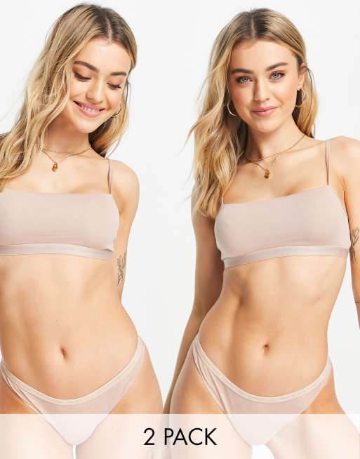 Calvin Klein CK One logo unlined bralette 2 pack in cedar