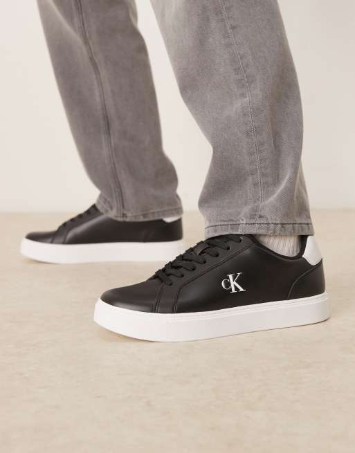 Calvin Klein classic leather cupsole sneakers in black and white