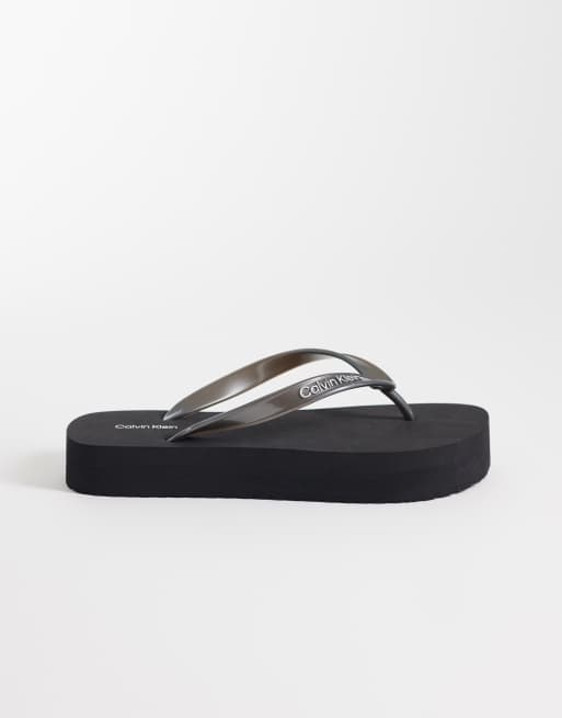 Calvin Klein Jeans flatform metallic flip flop sandals in black