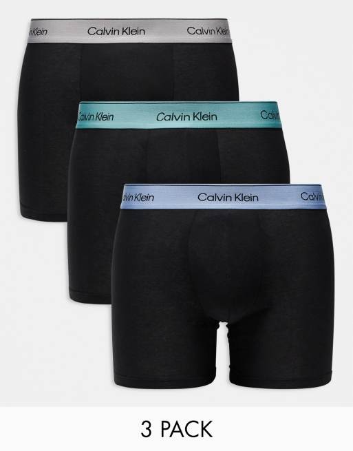 Calvin Klein modern cotton boxer briefs 3 pack in black with beige/blue/green waistband