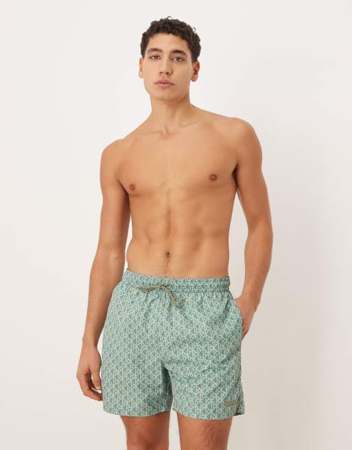 Calvin Klein monogram print drawstring swim shorts in blue