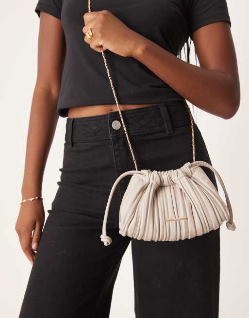 Calvin Klein plisse drawstring shoulder bag in light gray