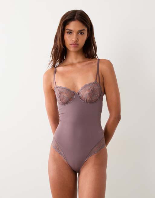 Calvin Klein Shapewear Sensual Stretch Lace bodysuit in brown