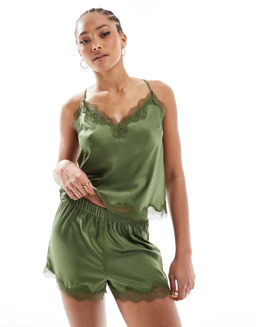 Chelsea Peers Bridesmaid satin cami top and short set in green