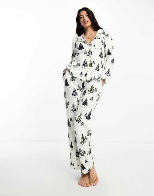 Chelsea Peers Christmas tree print top and pants pajama set in snow white