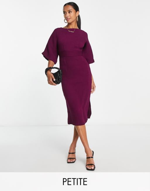 Closet London Petite ribbed pencil midi dress in plum