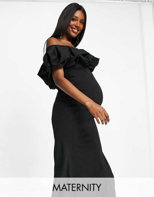 Club L London Maternity extreme ruffle detail maxi dress with thigh split in black