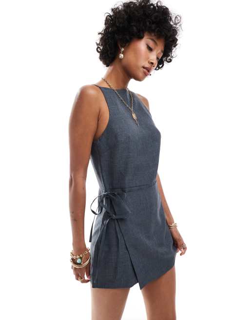 COLLUSION 00s skort wrap romper in gray