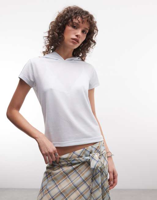 COLLUSION airtex hoodie short sleeve tee in light blue