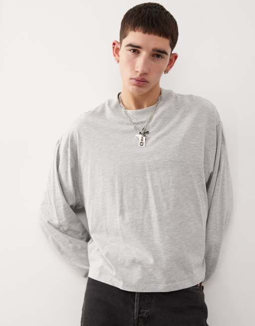 COLLUSION boxy crop long sleeve T-shirt in gray heather