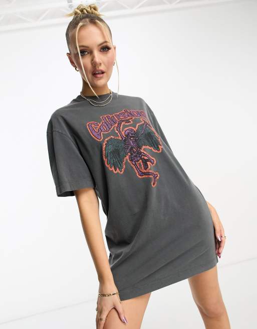 COLLUSION branded graphic T-shirt dress in gray