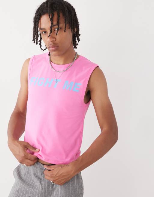 COLLUSION Festival slim tank top in pink with fight me slogan
