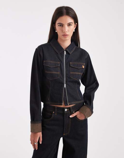 COLLUSION fitted jacket with orange contrast cuffs in dark blue