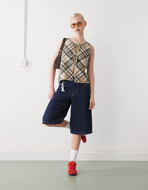 COLLUSION fluffy knit waist coat in plaid