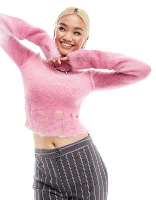 COLLUSION fluffy ombre fitted striped sweater in pink