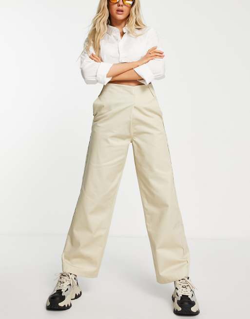 COLLUSION heavy canvas wide leg pants with cross over front in camel